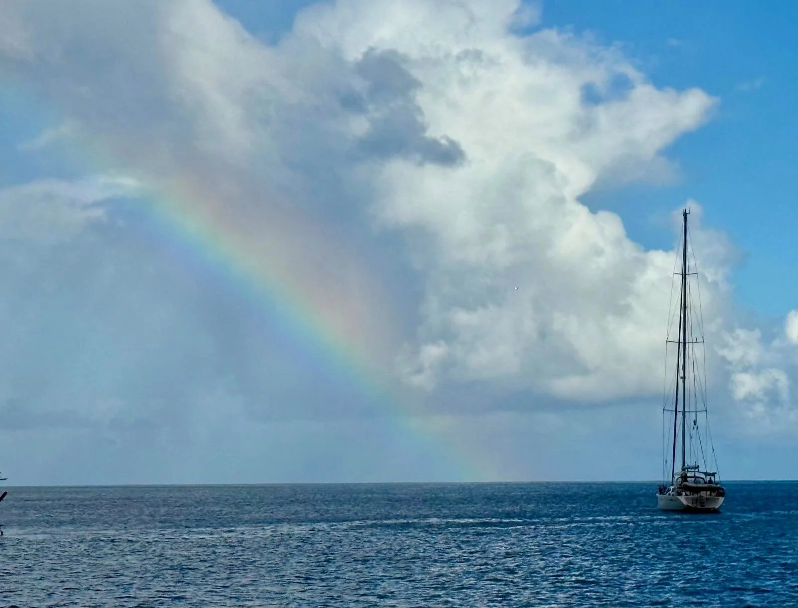 As the mist fell on Fatu Hiva, we followed a rainbow (thank you Cat on Carina)